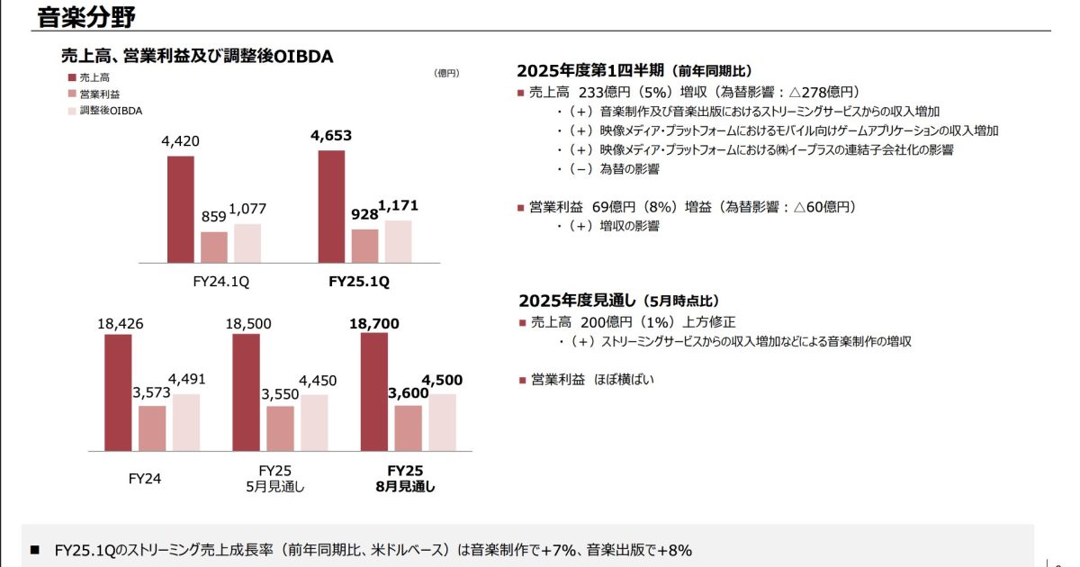 ソニーグループ、25年4月~6月期の⾳楽分野は増収増益 通期見通しを上方修正 | Musicman