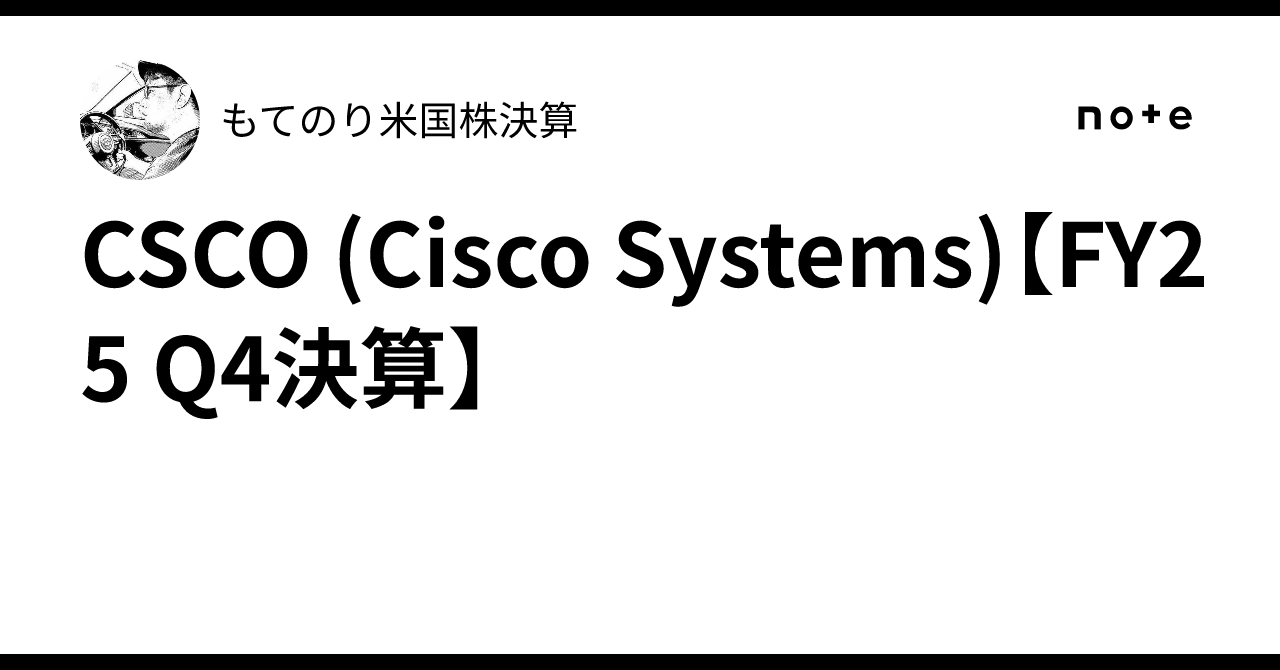 CSCO (Cisco Systems)【FY25 Q4決算】|もてのり✨米国株決算