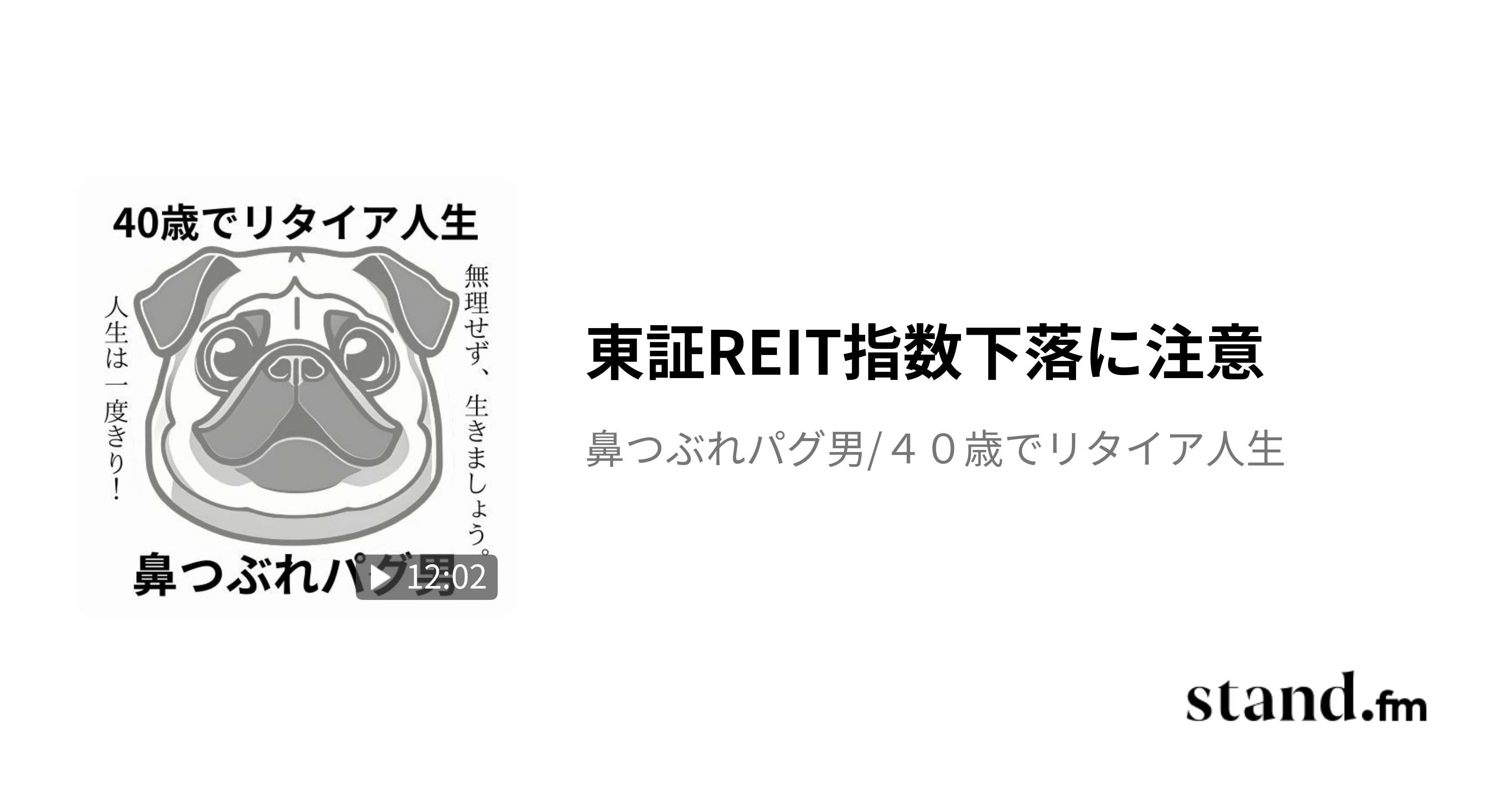 東証REIT指数下落に注意 - 鼻つぶれパグ男/40歳でリタイア人生 | stand.fm
