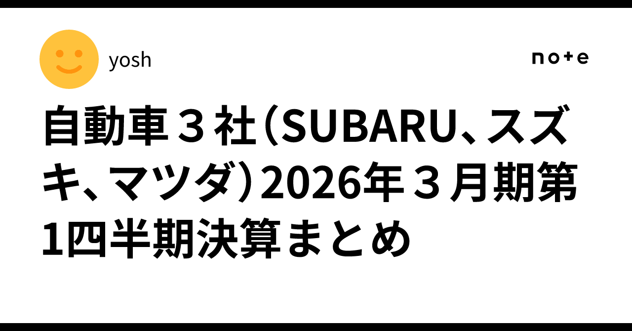 自動車3社2026年3月期第1四半期決算まとめ note.com/yosh4631/n/nc0…