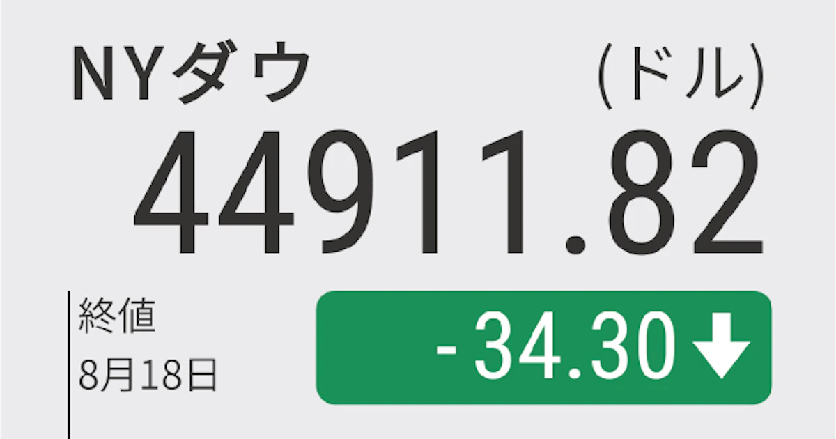 NYダウ小反落、34ドル安 米ウクライナ会談にも反応薄 - 日本経済新聞