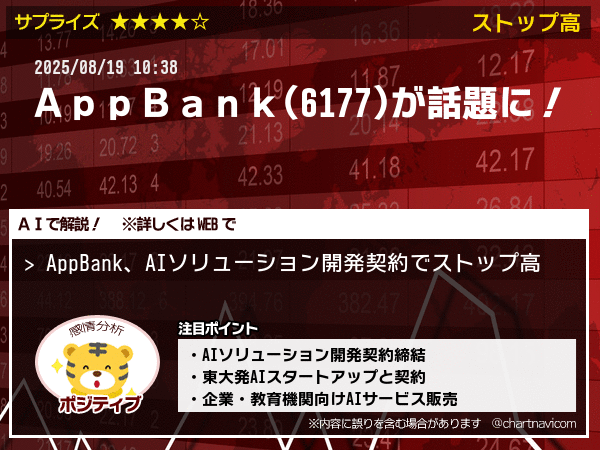 AppBank、AIソリューション開発契約でストップ高|チャートなび