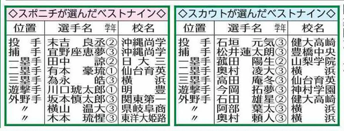 【甲子園】ベスト9選出 プロスカウト陣は横浜から3選手 スポニチ取材班は県岐阜商の横山ら - スポニチ Sponichi Annex 野球