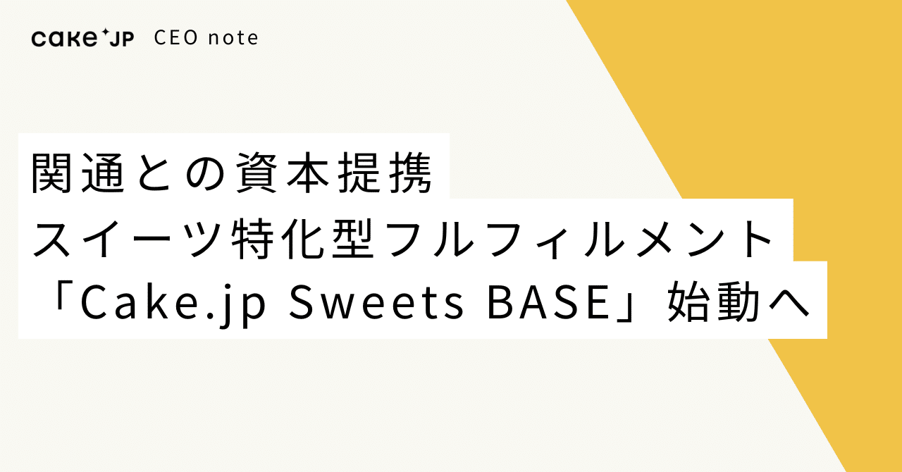 スイーツ業界の未来を支える。関通と資本提携、スイーツ特化型フルフィルメント「Cake.jp Sweets BASE」始動へ。|高橋優貴 | Cake.jp CEO