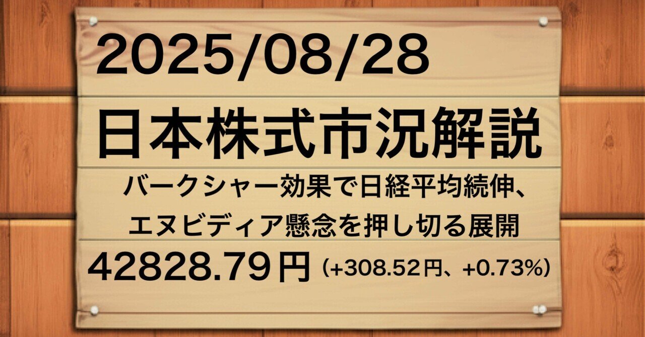 【2025年8月28日】日本株式市場解説:バークシャー効果で日経平均続伸、エヌビディア懸念を押し切る展開|秀