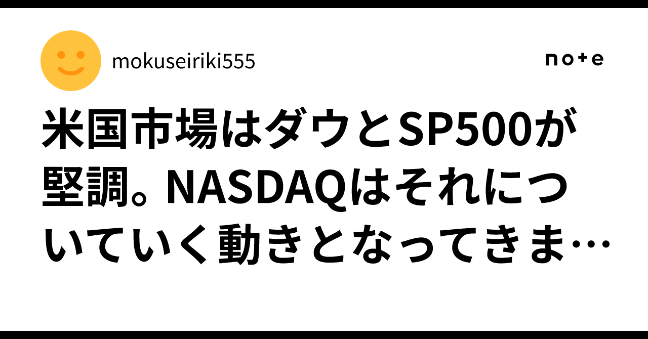 米国市場はダウとSP500が堅調。NASDAQはそれについていく動きとなってきました。エヌビディアは下落ですが、SNOWやモンゴDB、コアウイーブなどが大幅高となりました。|mokuseiriki555