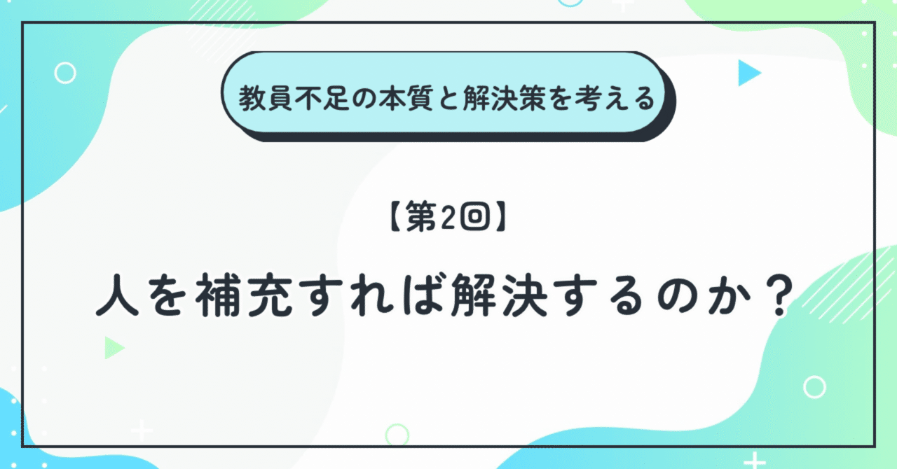 教員不足の本質と解決策を考える【第2回】〜「人を補充すれば解決するのか?」|たかひろ