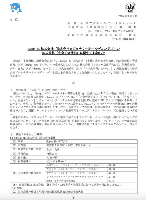Zoffが「メガネスーパー」運営のビジョナリーHDを完全子会社化 190億円超で : 官報ブログ