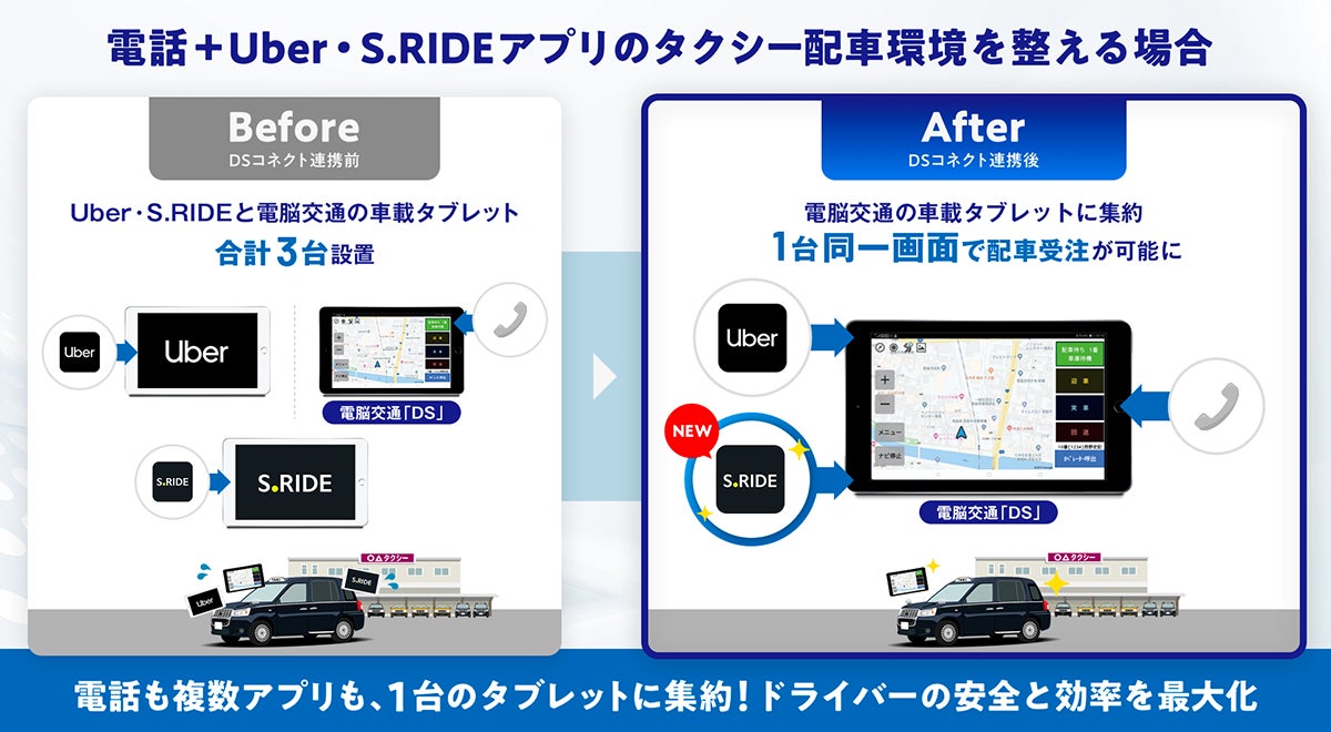 業界初、電話と複数アプリの配車依頼を1台のタブレット同一画面に集約 -新たにS.RIDEがDSコネクトの「1UI」に対応-