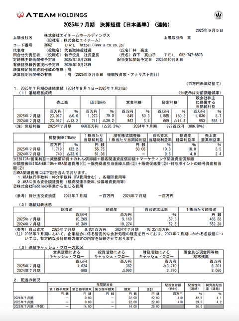 エイチームHD 2025年7月期通期決算 : 官報ブログ