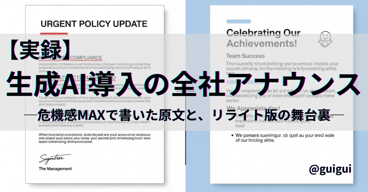 【実録】生成AI導入の全社アナウンス──危機感MAXで書いた原文と、リライト版の舞台裏|グイグイ ⚡ 圧倒的AI実務家