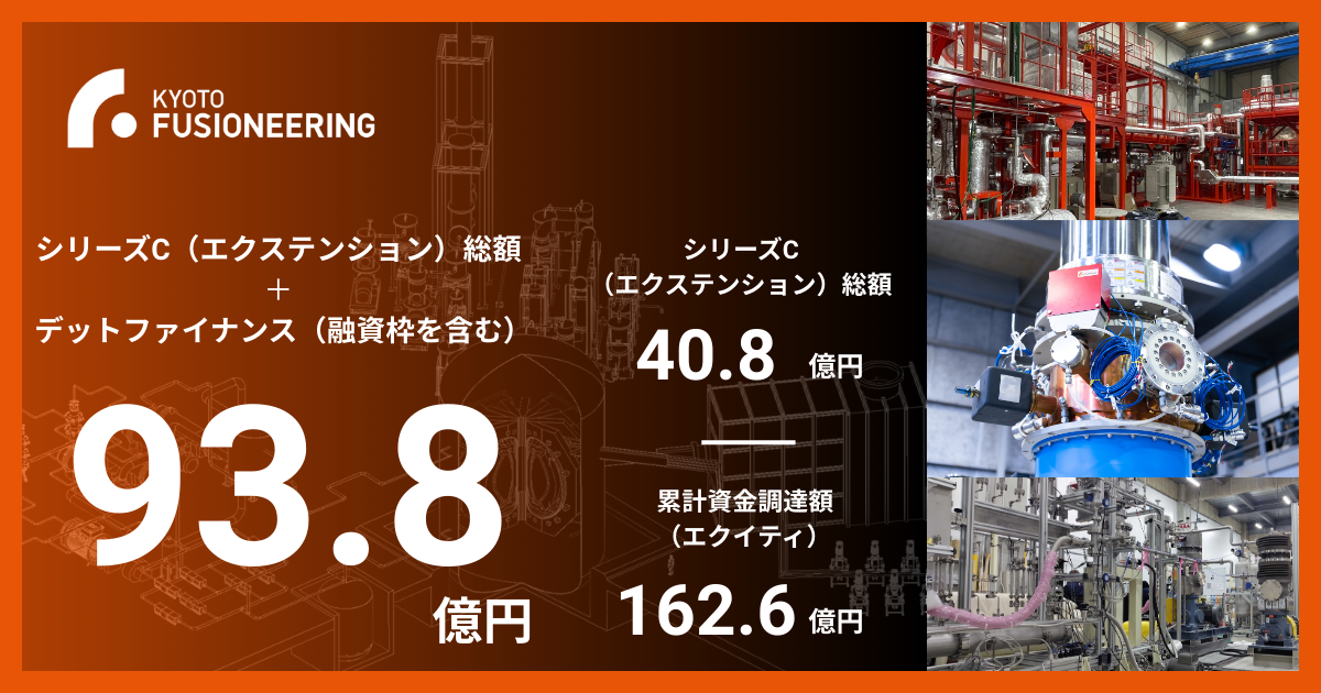 おぉ!京都フュージョニアリング、シリーズCのエクステンションラウンドで資金調達。エクイティ40億ちょいと、デットで50億。 デットは日本政策金融公庫、国際協力銀行、三菱UFJ銀行、三井住友銀行、京都銀行から。累計調達額は162.6億円。 kyotofusioneering.com/news/2025/09/0…