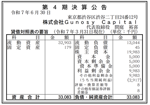 Gunosy Captal 決算公告(第4期) : 官報ブログ