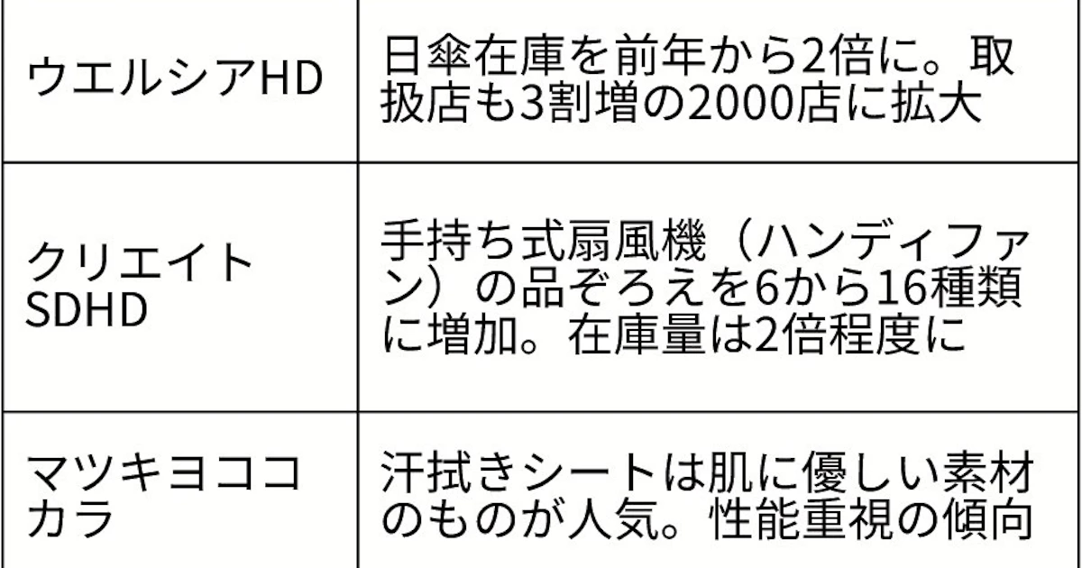 猛暑グッズ10月まで熱戦 ウエルシア、日傘の在庫2倍 クリエイト、携帯扇風機16種類 - 日本経済新聞
