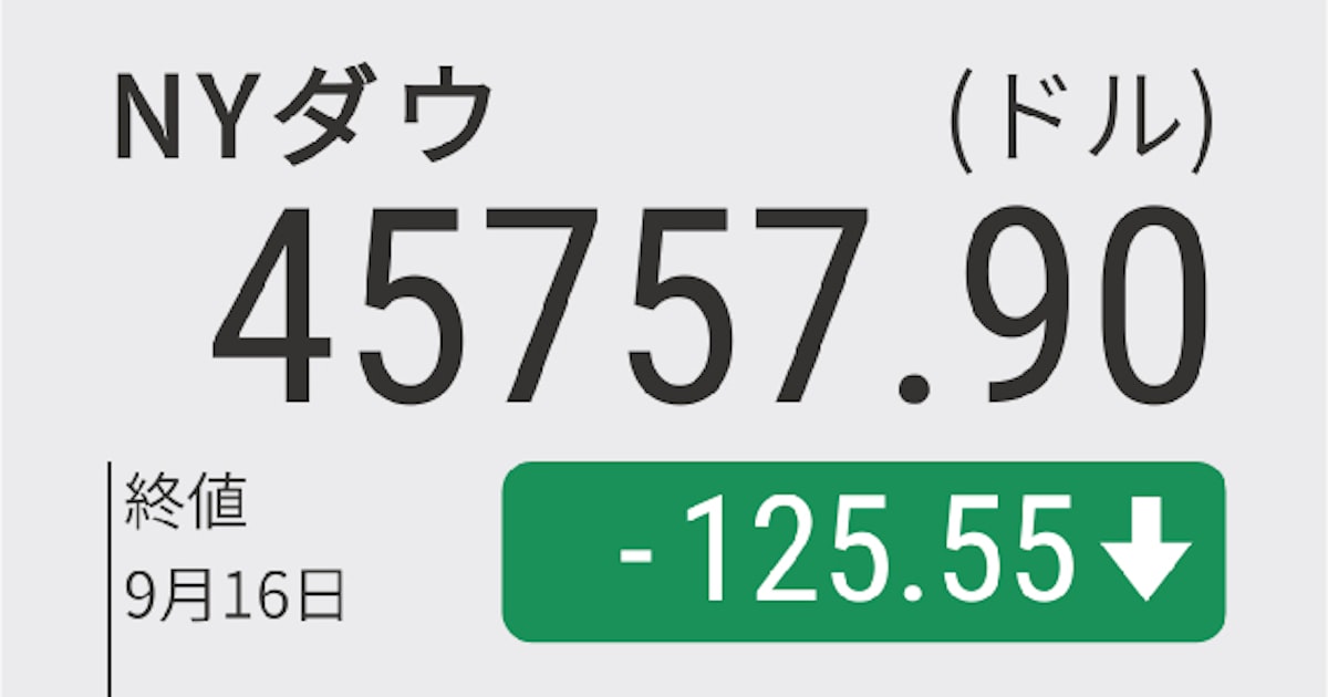NYダウ反落、125ドル安 最高値圏で持ち高調整 - 日本経済新聞
