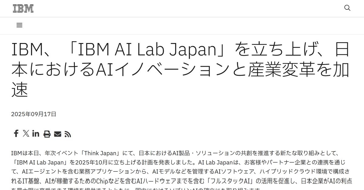 IBM、日本にAI開発拠点 📌ITmedia AI+ newspicks.com/news/15093489/…