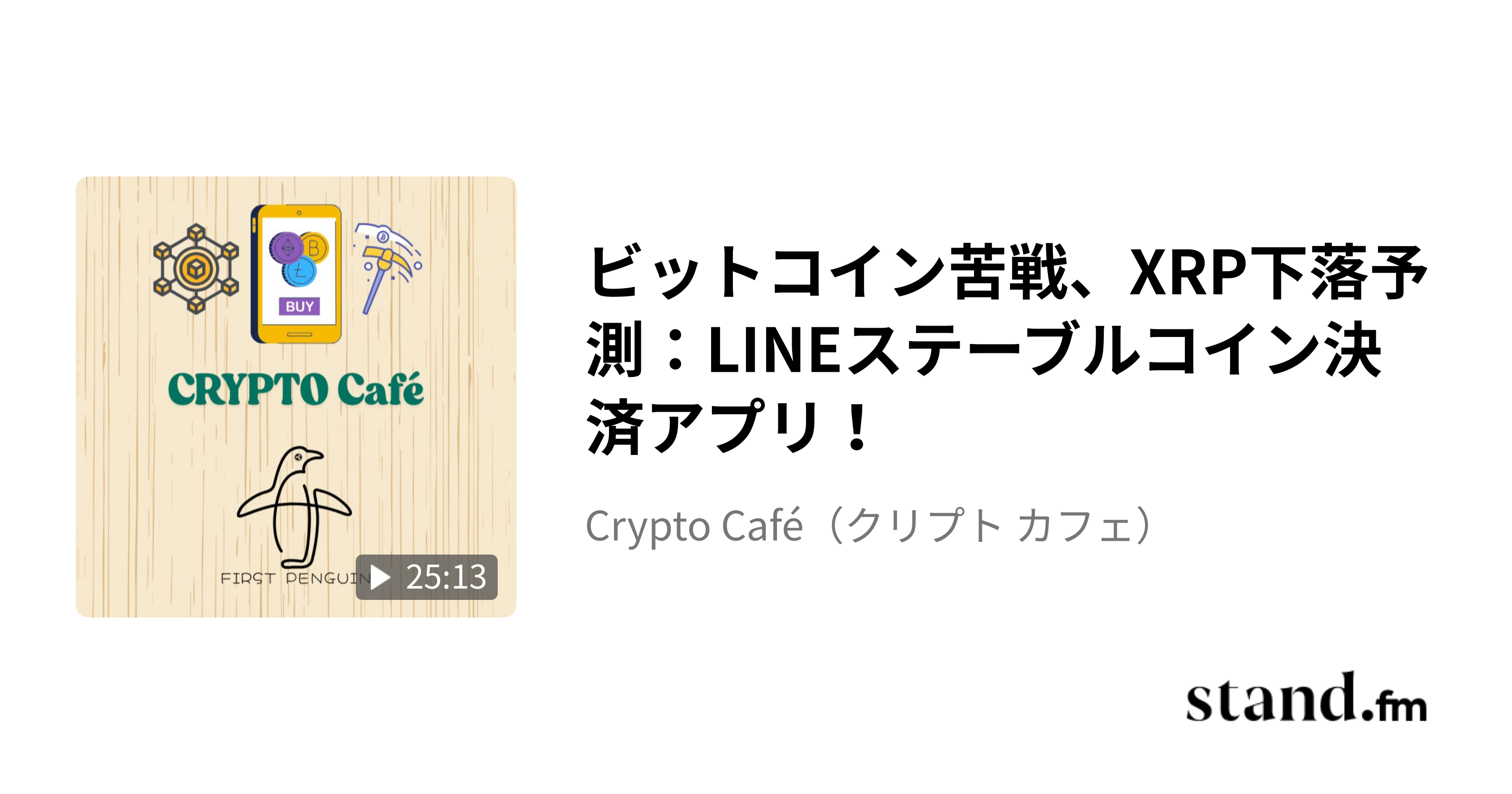 ビットコイン苦戦、XRP下落予測:LINEステーブルコイン決済アプリ! - Crypto Café(クリプト カフェ) | stand.fm
