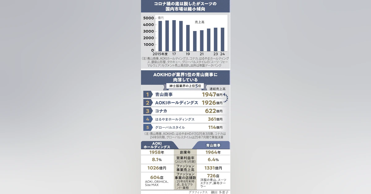 AOKI、「万年2位」脱却 視野 青山商事に売り上げ肉薄 原点アパレルテコ入れ - 日本経済新聞