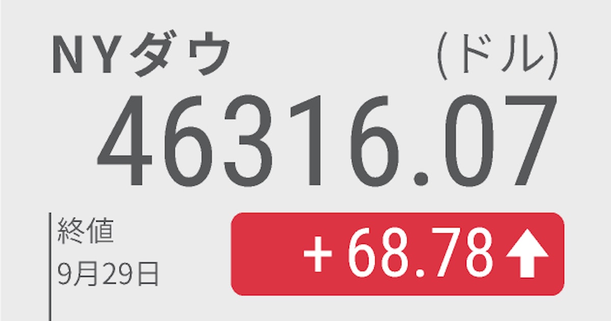 29日のダウ平均は前日比62ドル高、終値46316ドル 8月のPCE物価指数受け、利下げ継続との見方が改めて強まった。 また、米ホワイトハウスは、ガザにおける停戦案を発表し、支えになった。 ただ、米政府機関の一部閉鎖の可能性が意識されており、ダウ平均は一時下落に転じた。 nikkei.com/article/DGXZQO… pic.x.com/FaTJHprig9