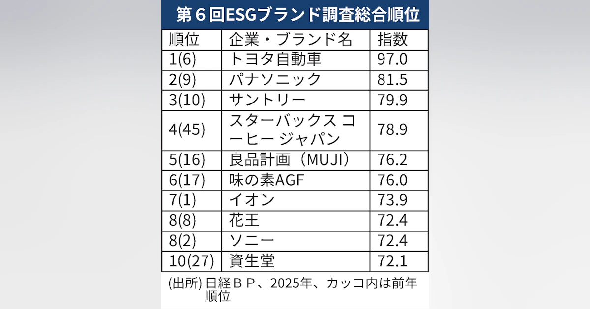 トヨタが総合首位に復活、全部門でトップ 日経BP「ESGブランド調査」 - 日本経済新聞