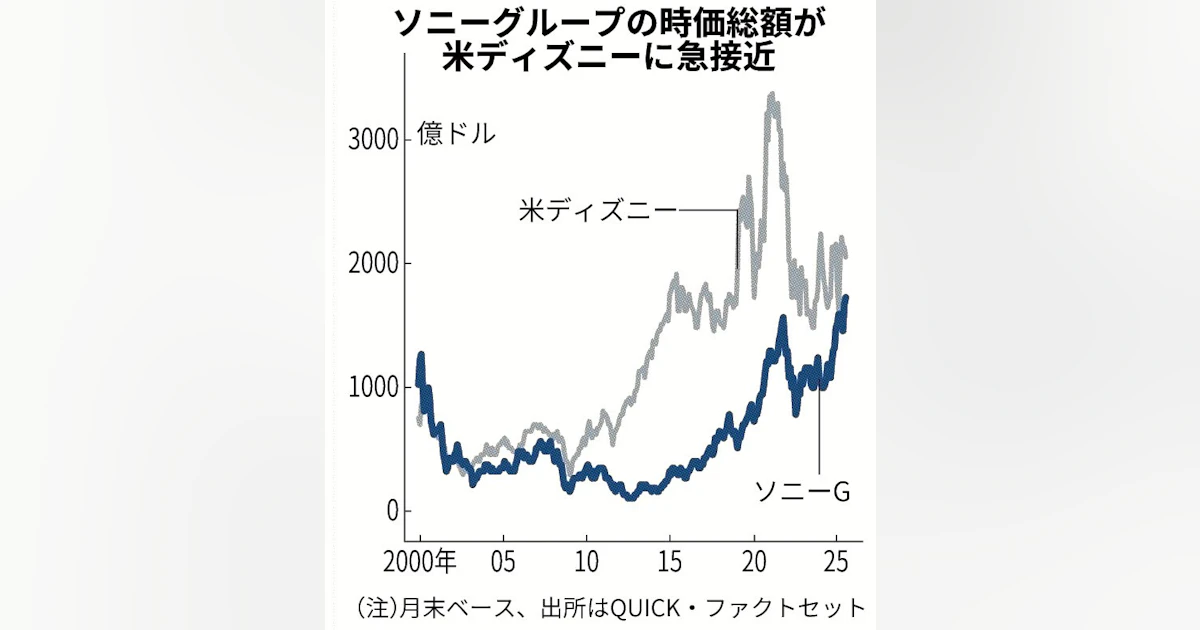 ソニーG、ディズニー猛追 エンタメ複合経営で時価総額伸長 IP活用、事業間シナジー - 日本経済新聞