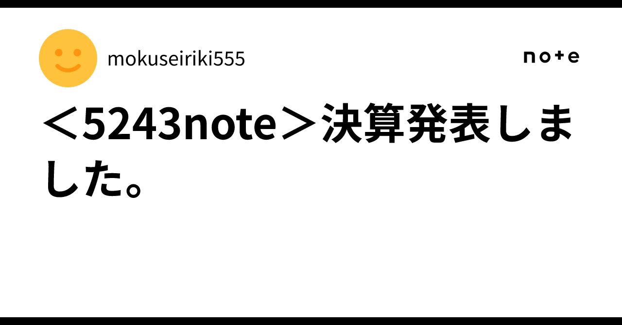 <5243note>決算発表しました。|mokuseiriki555