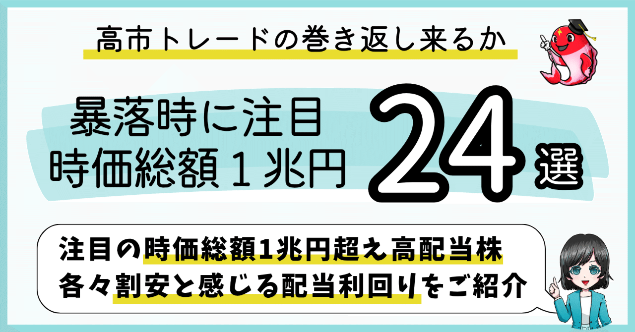 【暴落スタンバイ】時価総額1兆円超えの注目高配当株24選??|プラズマコイ@高配当株で年間配当金100万円を目指す