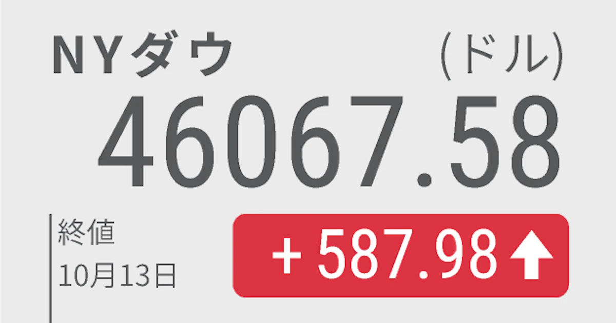 NYダウ 反発587ドル高 10月14日 トランプ大統領は、SNSに「中国については心配いらない。すべてうまくいく」と投稿した。ベッセント財務長官はインタビューで、調整中の米中首脳会談が予定通り行われるとの認識を示した。週内に米中の事務レベルの協議を行うことも明らかにしたnikkei.com/article/DGXZQO…
