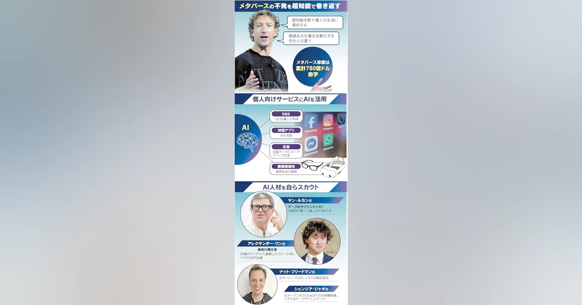 「超知能」傾倒、メタに焦り メタバース累計赤字11兆円、生成AIも遅れ スター人材引き抜き - 日本経済新聞