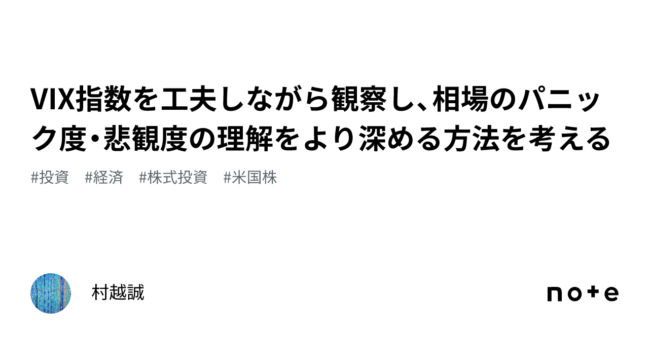 VIX指数を工夫しながら観察し、相場のパニック度・悲観度の理解をより深める方法を考える|村越誠