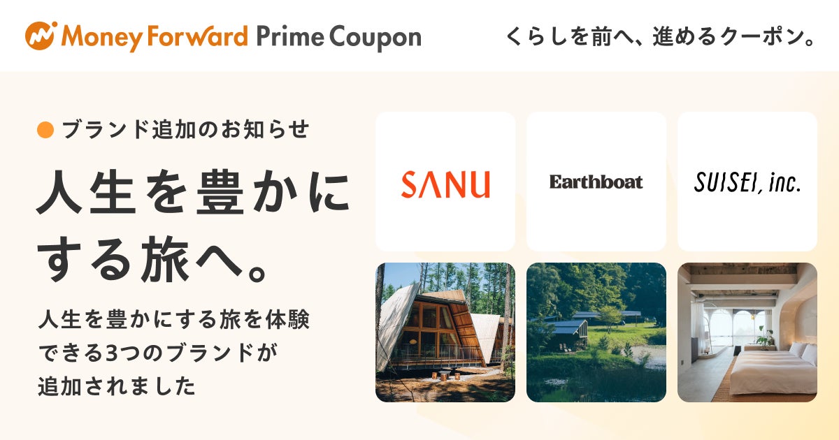 『マネーフォワード ME』プレミアム会員向け「Prime Coupon」、 「人生を豊かにする旅へ。」をテーマに新たな提携ブランドを追加