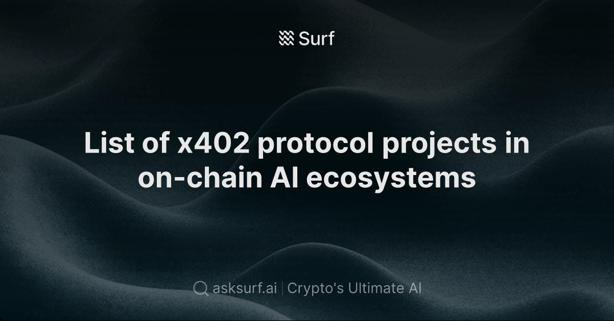 x402プロトコル主導のHTTP402ベース決済規格がAIエージェント経済を牽引。 時価総額$1.78億、取引高$7,269万 BaseとSolana中心に20+プロジェクト稼働、主要例はQuestflow・PayAI・PING。 Google/Circle/Cloudflare提携で AIエージェントのVisaへ asksurf.ai/share/f0e798ad…