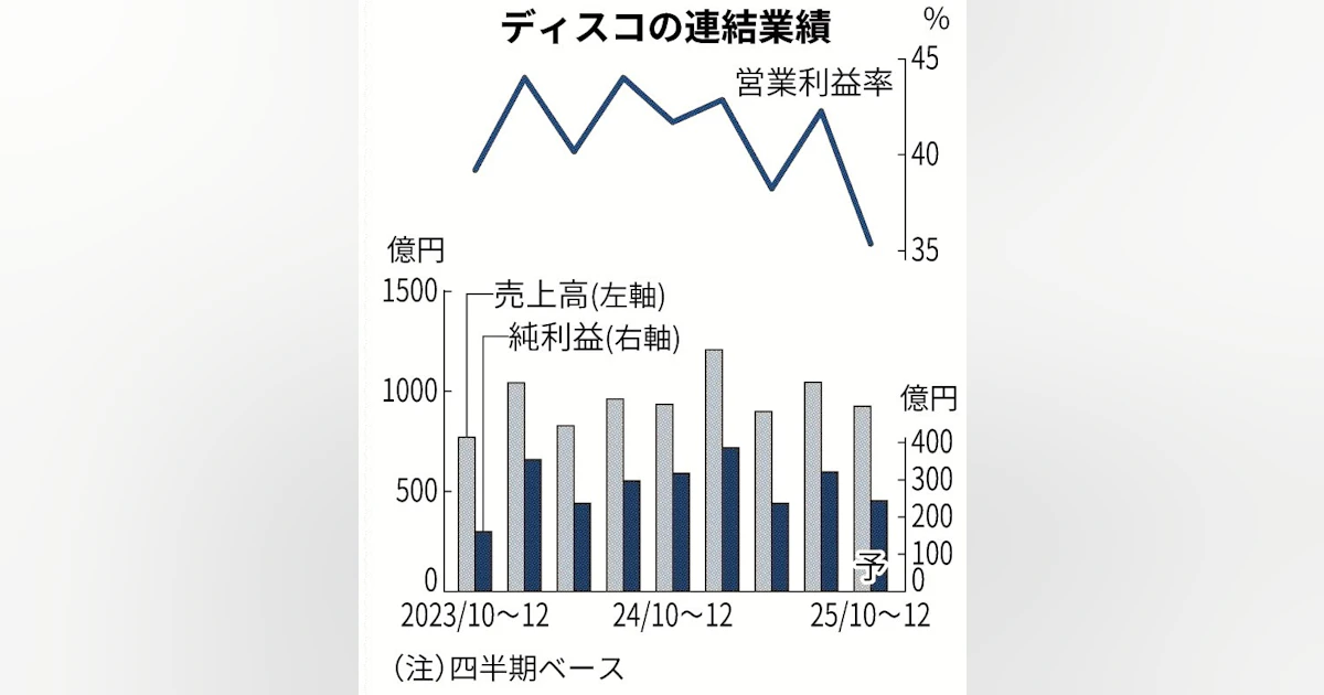 ディスコ純利益23%減 10~12月 円高重荷もAI需要増 - 日本経済新聞