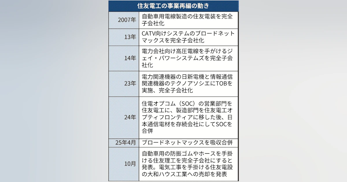 〈ビジネスTODAY〉住友電工、車事業軸に再編 「理工」完全子会社化へ 「電設」1200億円で売却 - 日本経済新聞