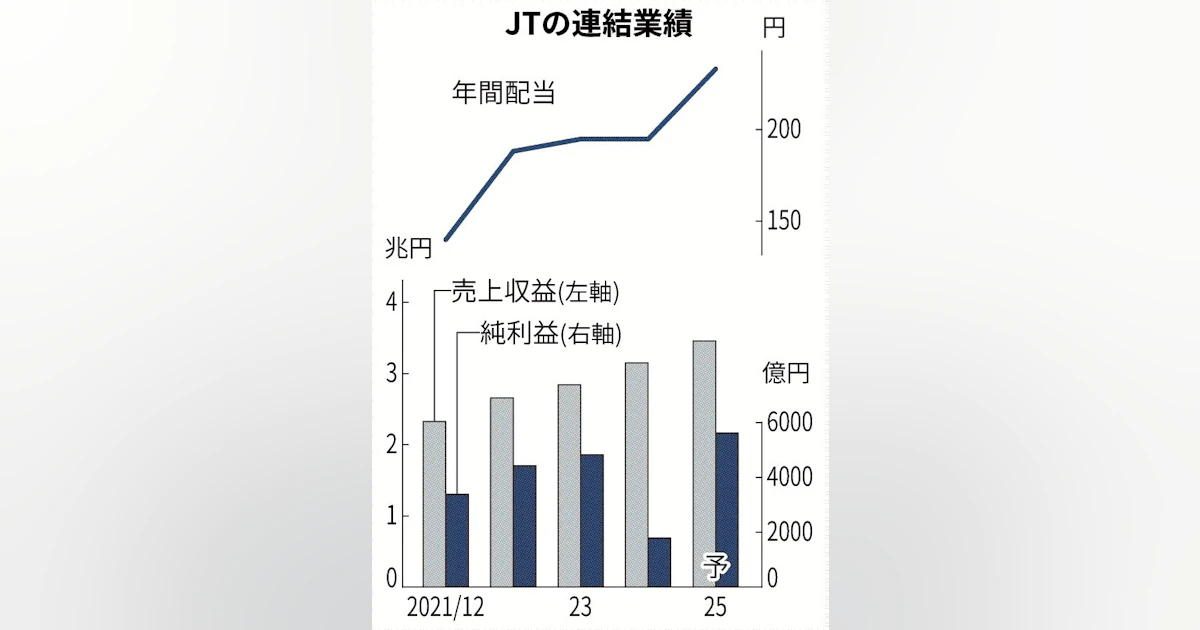JT、年間配234円に上げ 今期、たばこ販売持ち直し 純利益3.1倍に上方修正 - 日本経済新聞