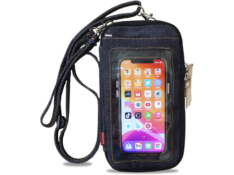 収納したまま操作できるデニム素材のスマホポーチ AmazonスマイルSALE期間は10%オフ