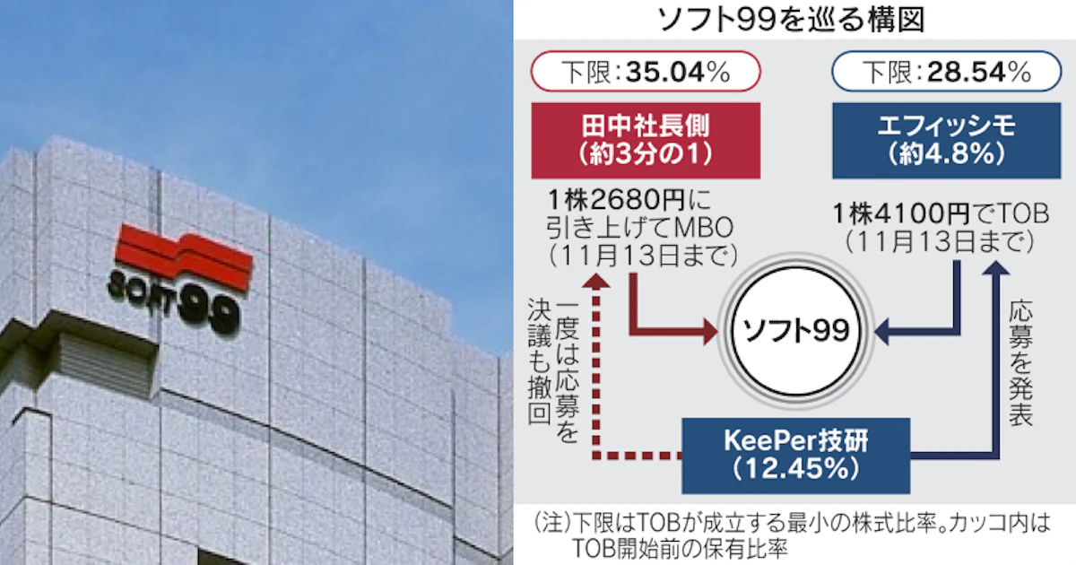 MBO進めるソフト99社長、エフィッシモの対抗TOB価格「合理性ない」 - 日本経済新聞