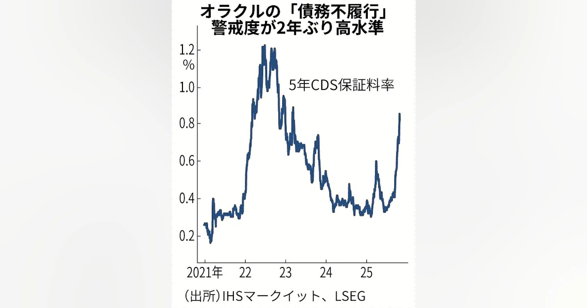 久々にCDS見たけどテックの中でも老舗なオラクルでも結構な高さ…最近はメディア買収への動きなど変な動きをしてるのも影響してそうだけども。確かにデータセンターやAI関連など新分野の投資回収の不確かさは見通せないっすよな。 nikkei.com/article/DGKKZO…