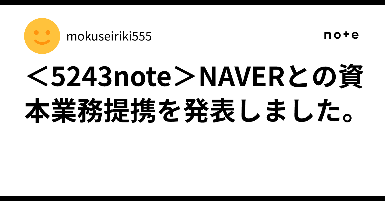 <5243note>NAVERとの資本業務提携を発表しました。|mokuseiriki555