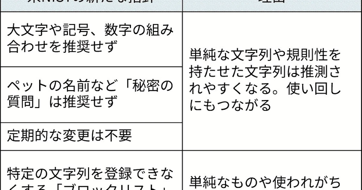 パスワード設定に新指針 記号・数字の混合「推奨せず」 米機関、攻撃側の技術進化 - 日本経済新聞