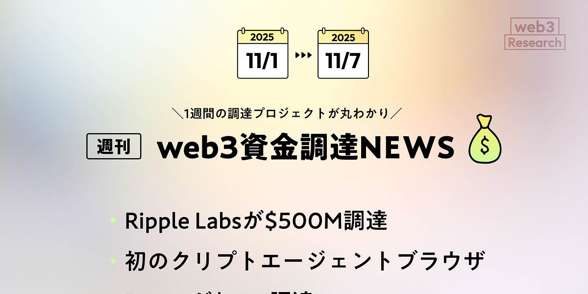 Ripple Labsが$500M調達、初のクリプトエージェントブラウザDonutが$15M調達、全26PJ【資金調達PJまとめ】