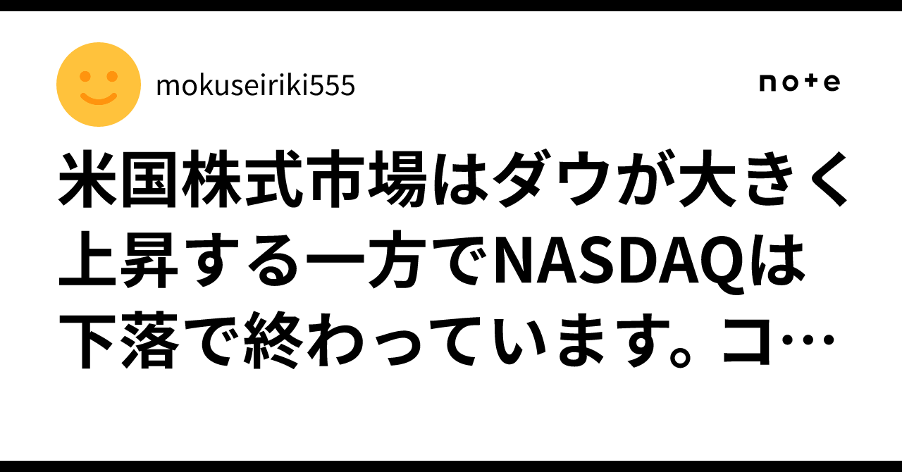 米国株式市場はダウが大きく上昇する一方でNASDAQは下落で終わっています。コアウイーブの急落で生成AI関連株に弱気ムードが台頭しました。|mokuseiriki555