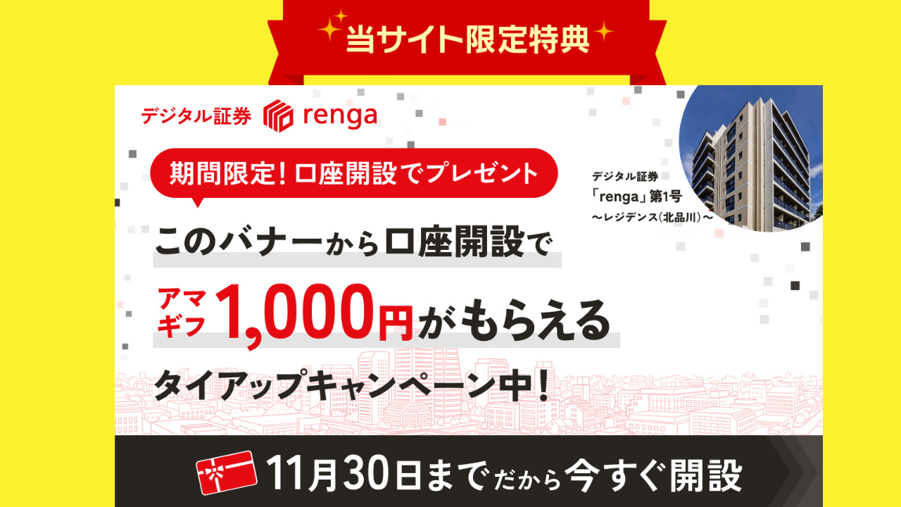 【口座開設でアマギフ1000円】デジタル証券「renga」の始め方