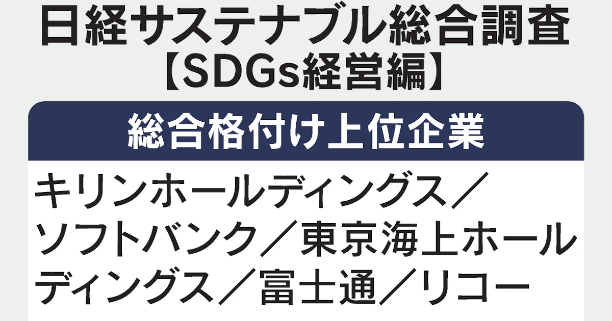 SDGsへの取り組み評価、ソフトバンクやキリンHDなど上位 日経調査 - 日本経済新聞