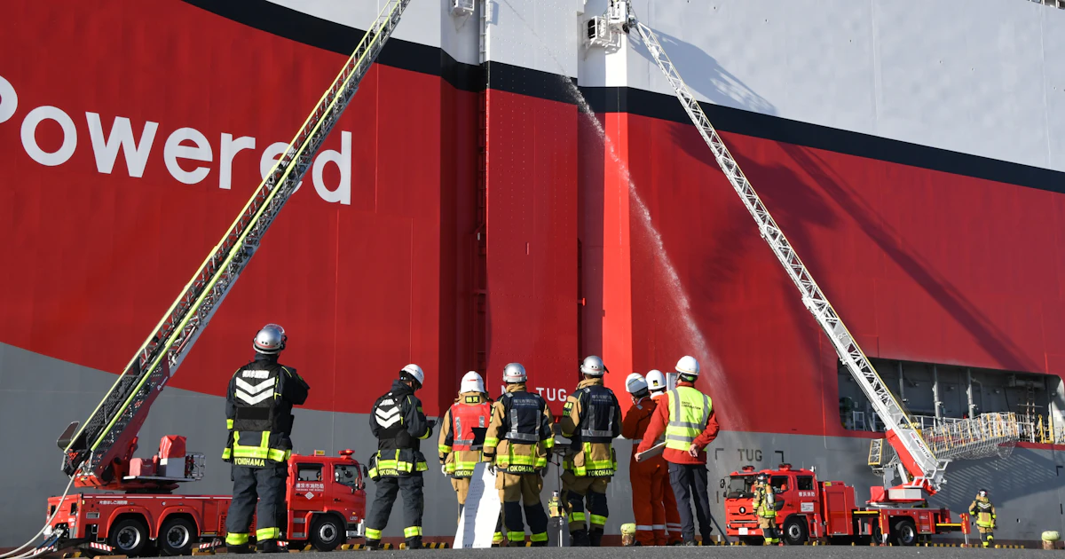 川崎汽船がEV運搬船の火災訓練 高い発火リスク、沈没で損失350億円 - 日本経済新聞
