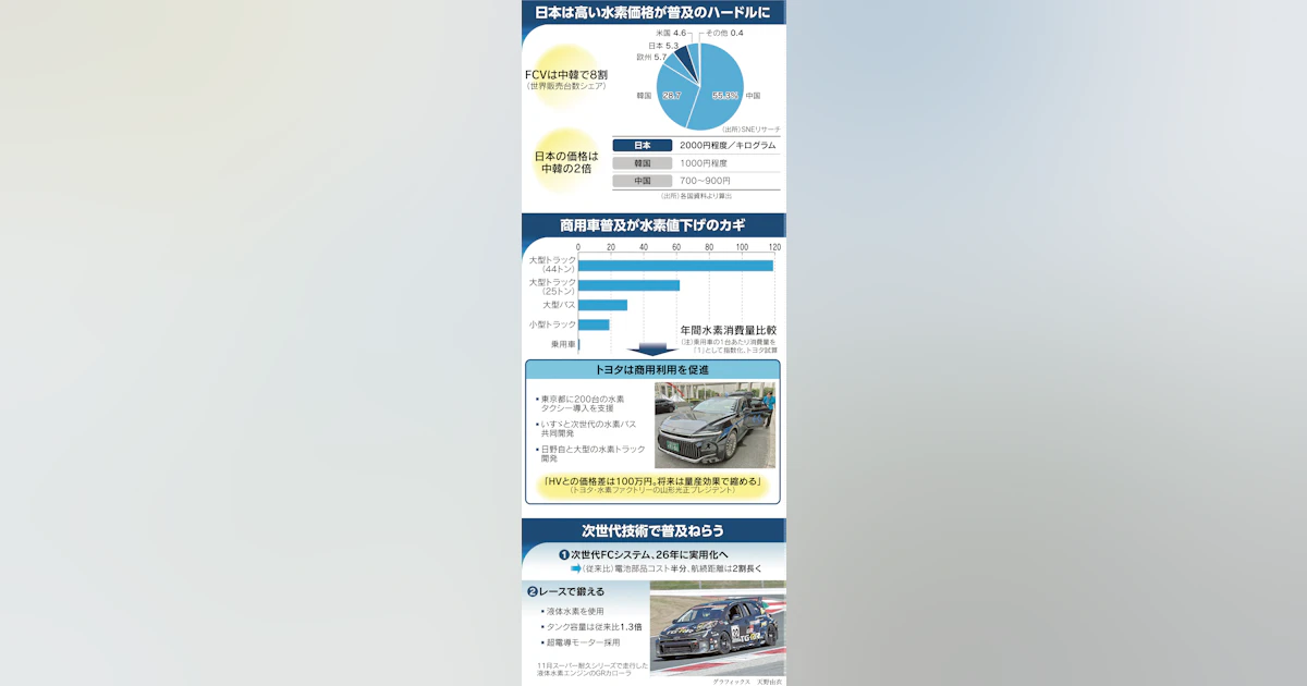 トヨタ、「MIRAI」の水素網つくる 製造装置を27年度にも外販 海外価格差2倍、解消急ぐ - 日本経済新聞