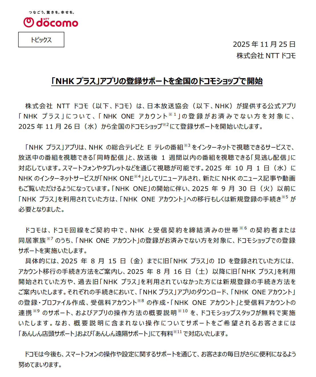 煩雑な「NHK ONEアプリ」の設定、ドコモショップで無料サポート