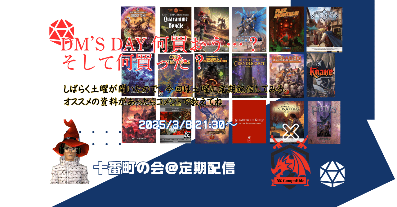 (2025/3/8配信台本)【5e】DM's DAY:何を買えばいい?何買った?【DriveTHRU RPGのセール中】|mash@十番町の会