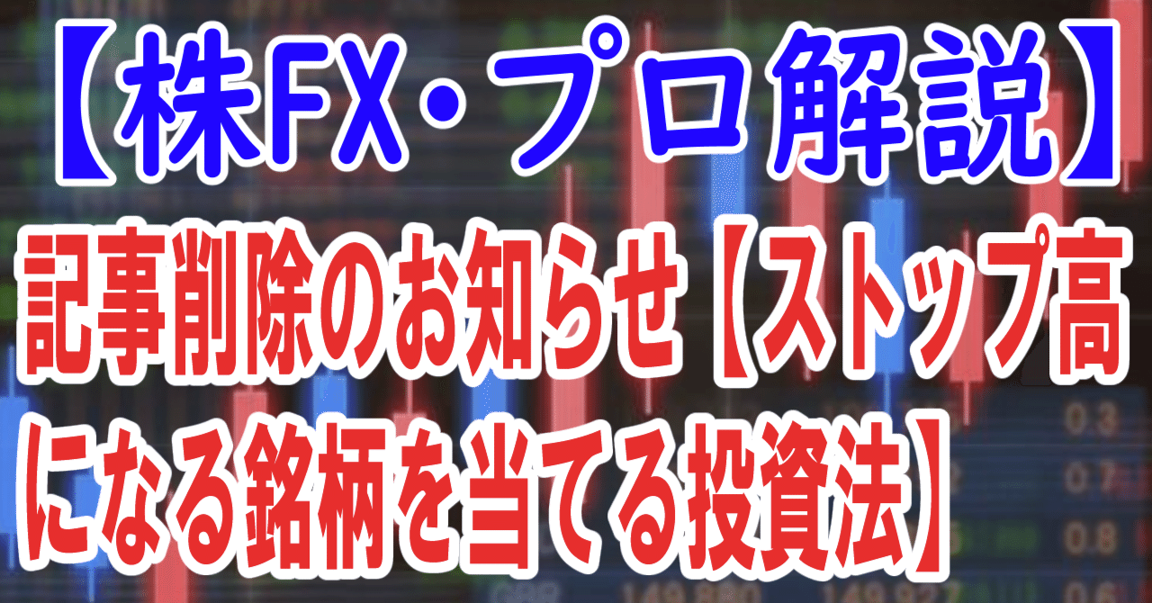 【株FX】記事削除のお知らせ【ストップ高になる銘柄を当てる投資法】|投資の毒舌な妹
