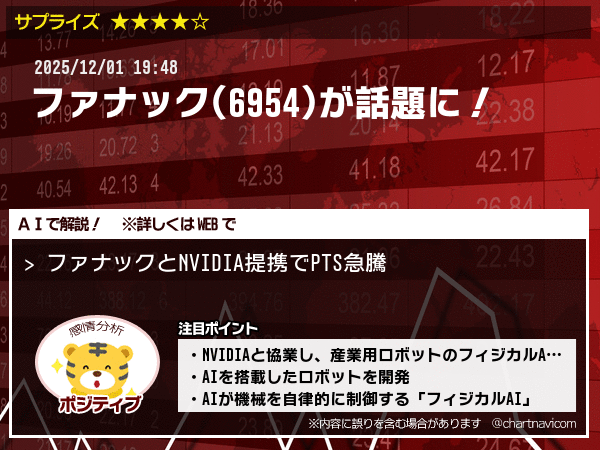 ファナックとNVIDIA提携でPTS急騰|チャートなび